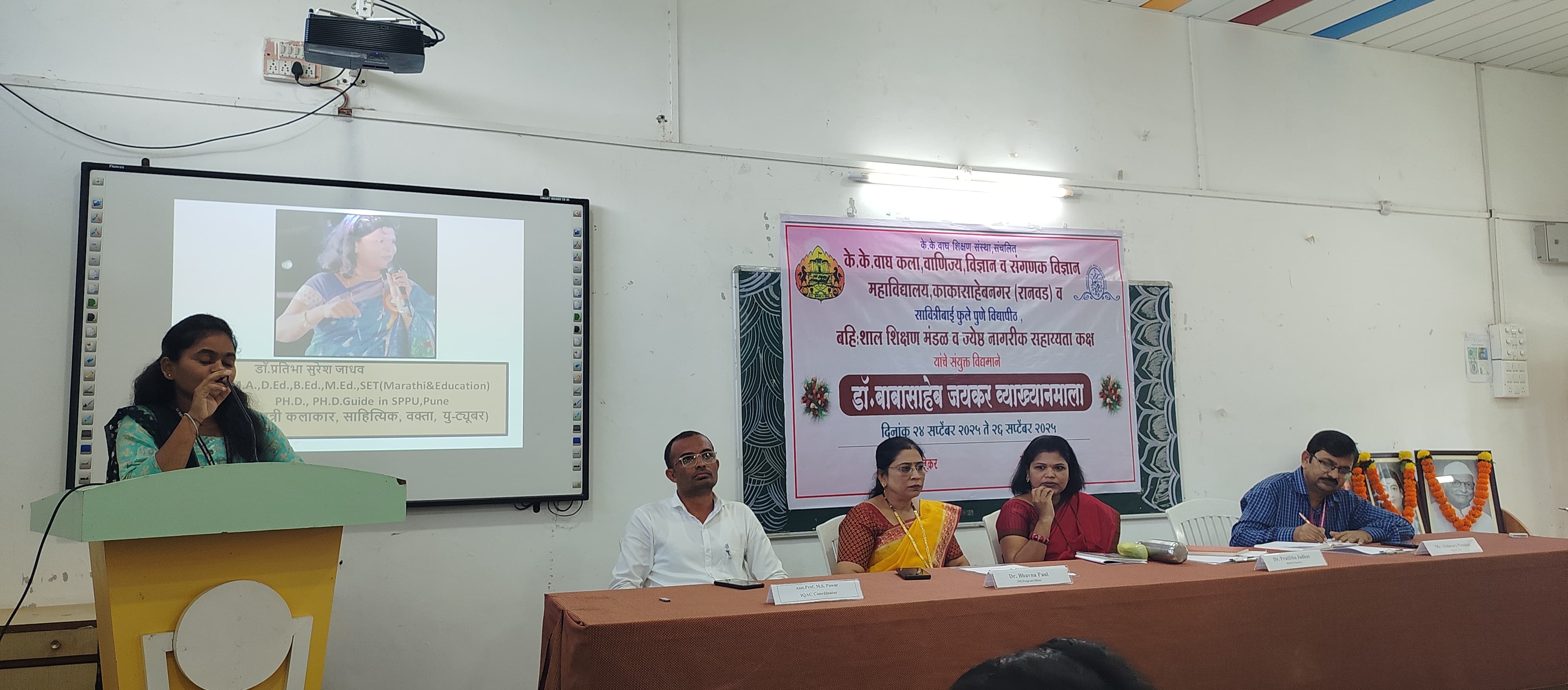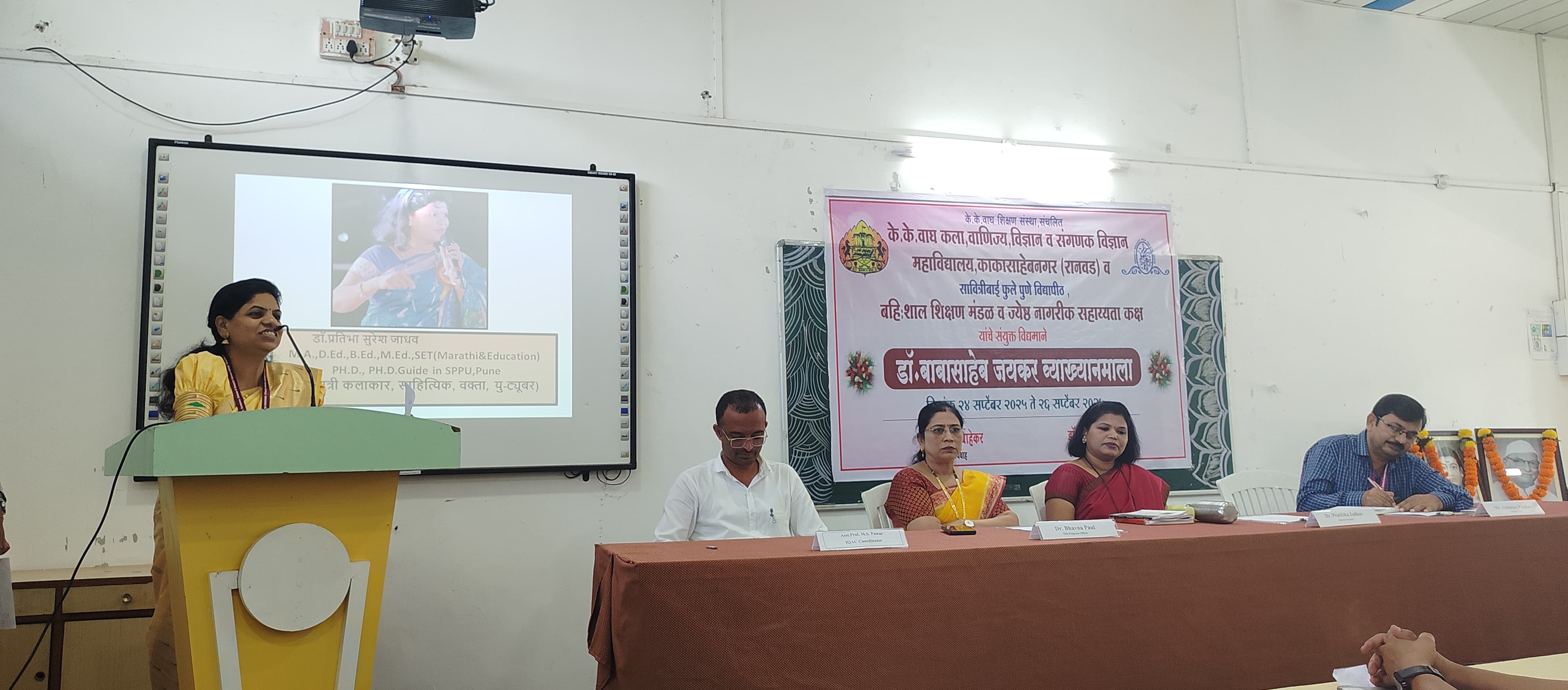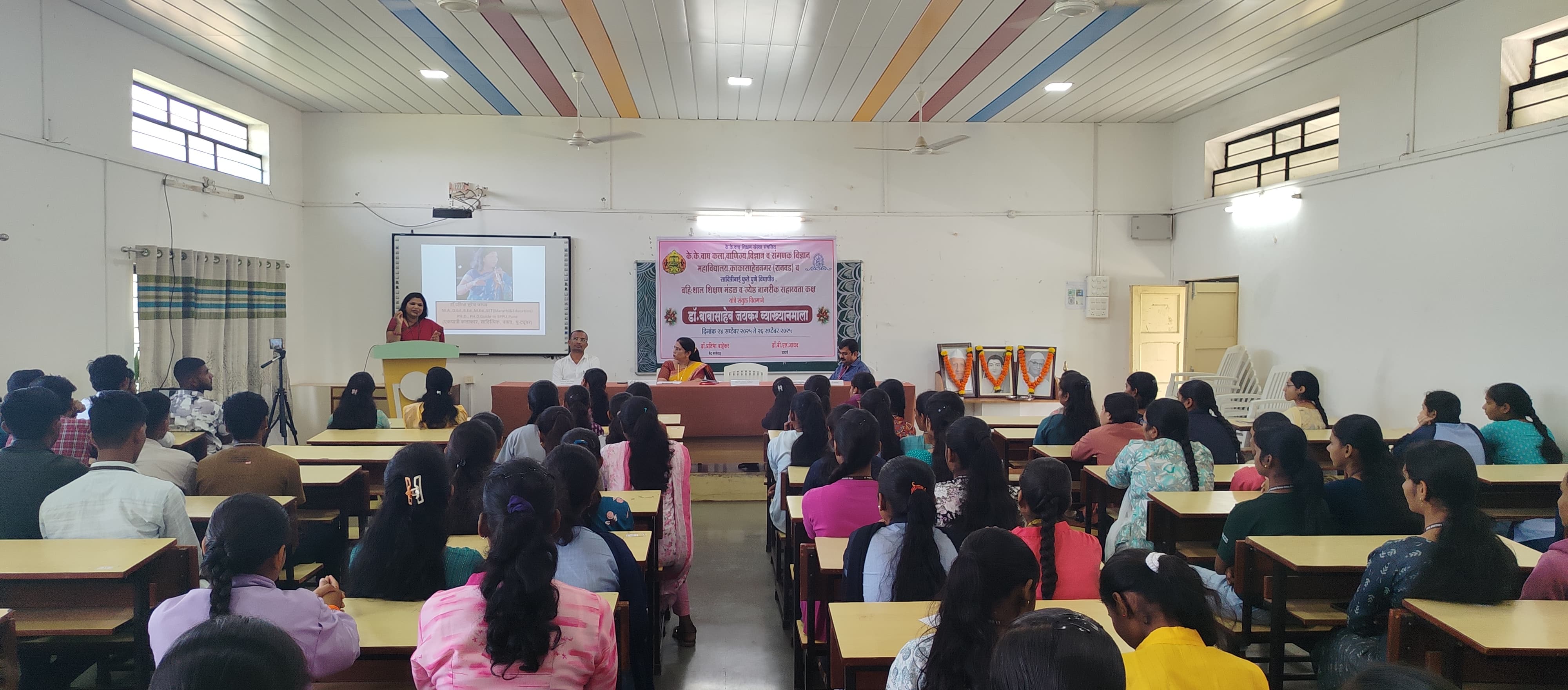 The lecture series was graced by I/C Principal Dr. Atul Gaware, IQAC Coordinator Prof. Milind Pawar, Dr. Bhavana Paul, Dr. Arun Thoke, Prof. Sheetal Jagtap, Prof. Mukta More, and other faculty members. A large number of students also attended the event enthusiastically.