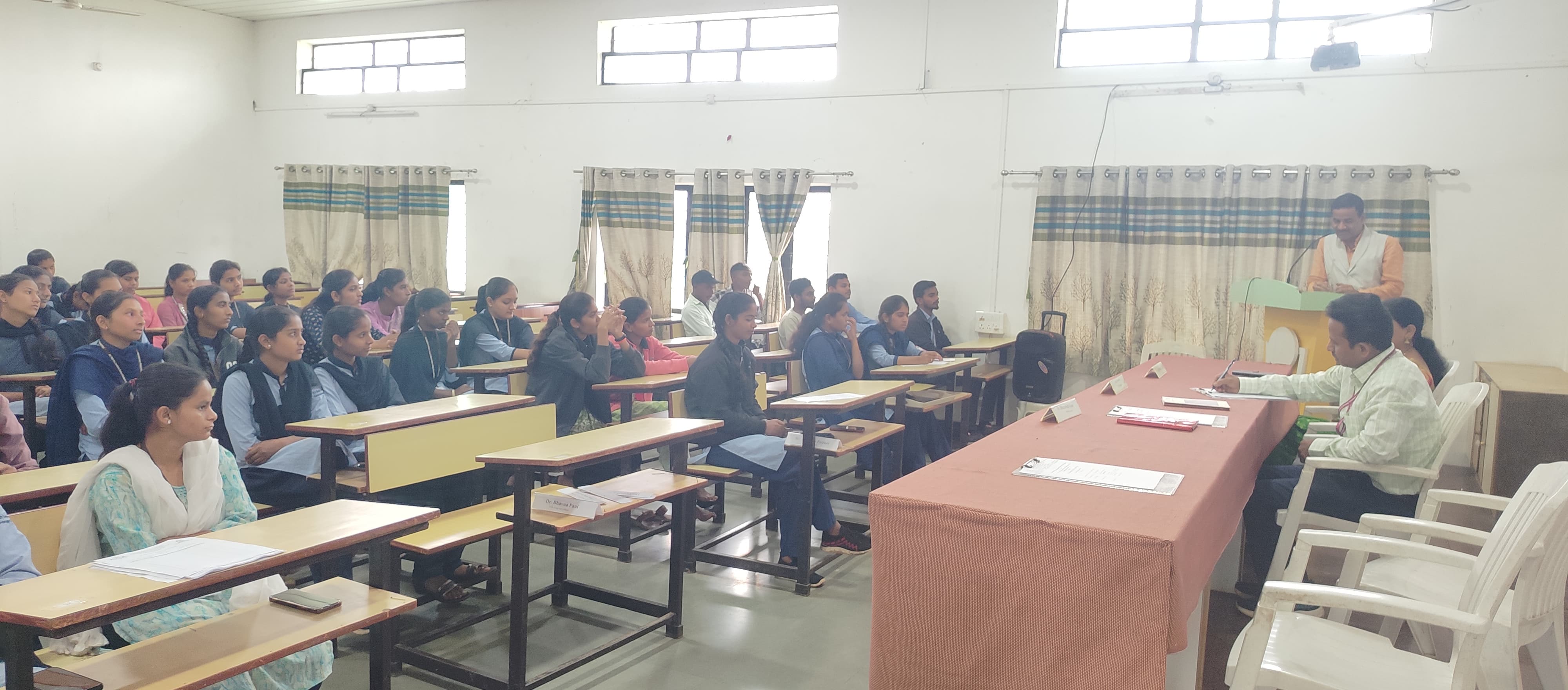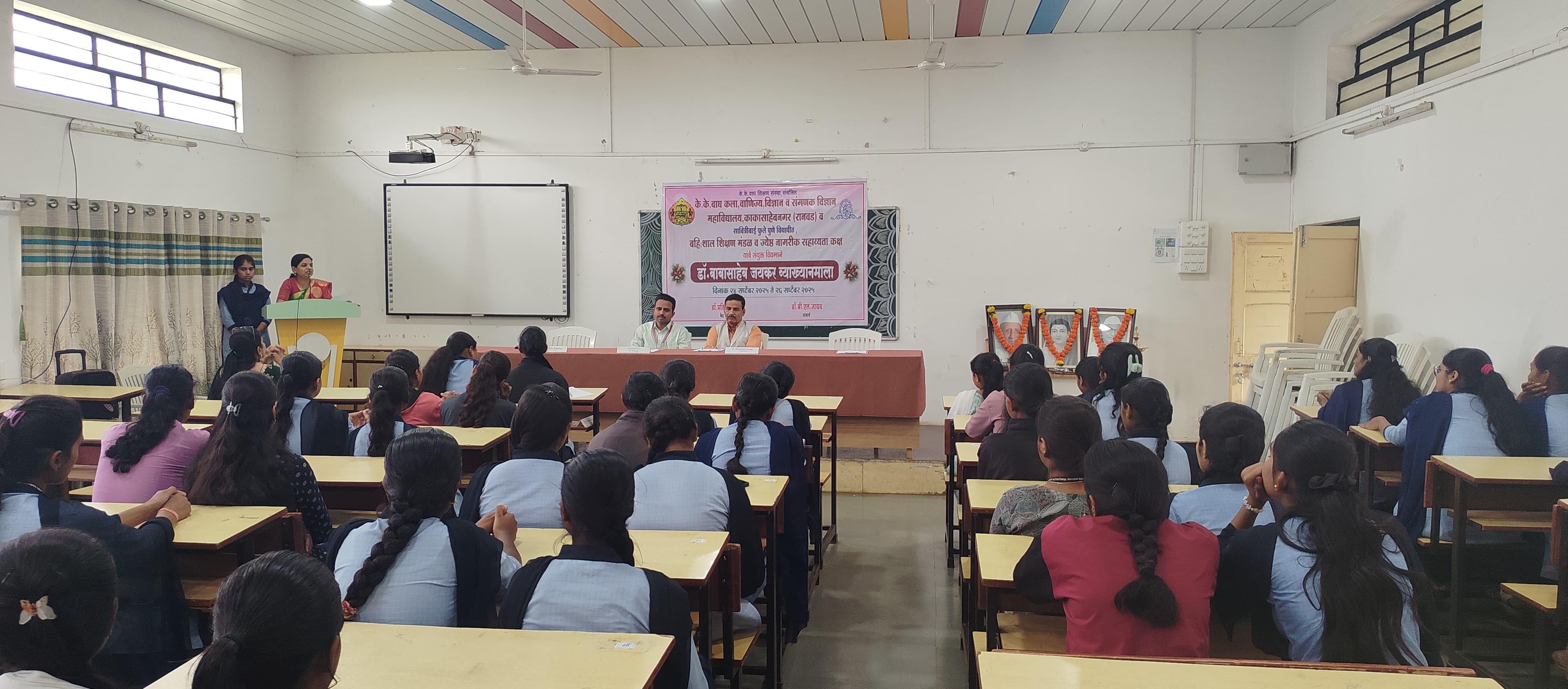 The first lecture in the series was delivered by Mrs. Savita Kale. While guiding the students, she emphasized that education is the true foundation of progress in life. She explained that there are many new opportunities in the service sector and guided the students on how to prepare themselves to seize those opportunities.
