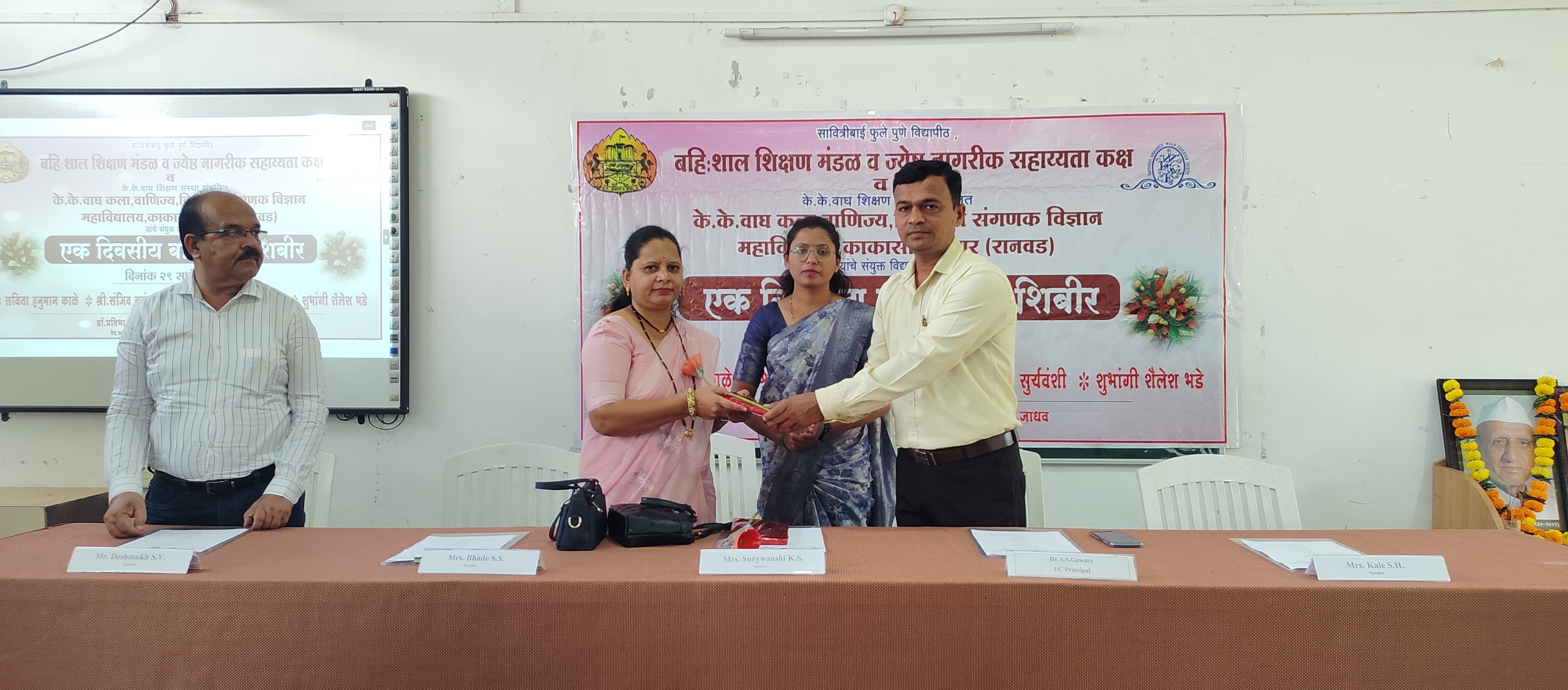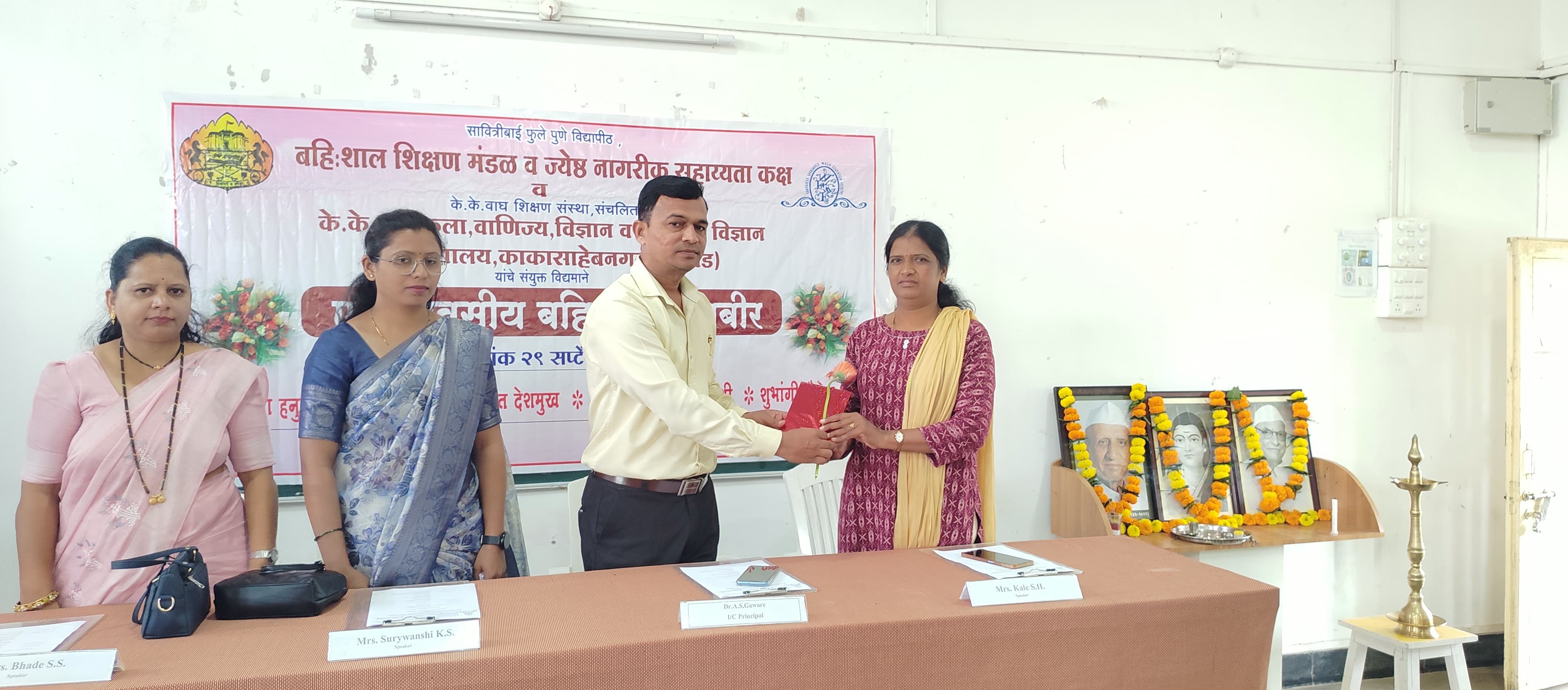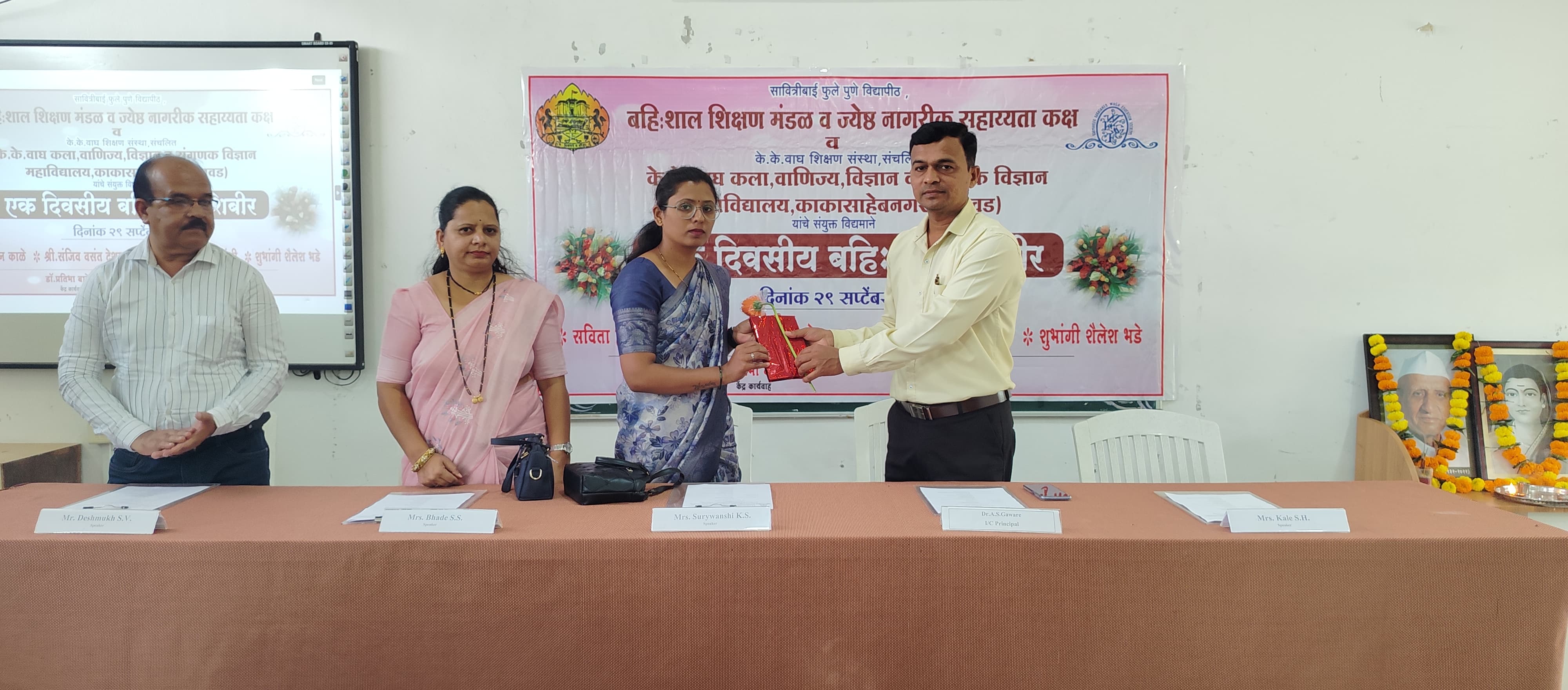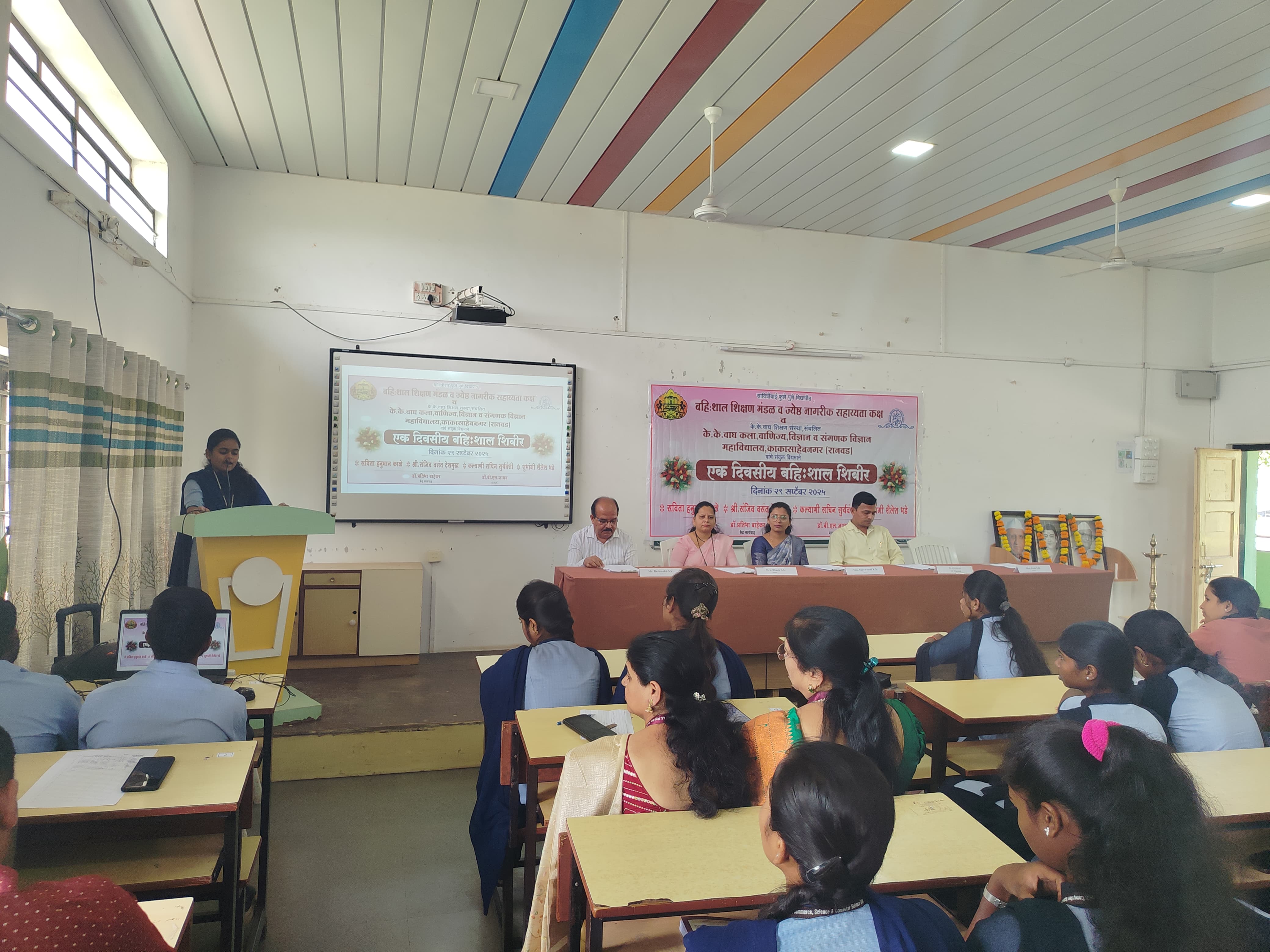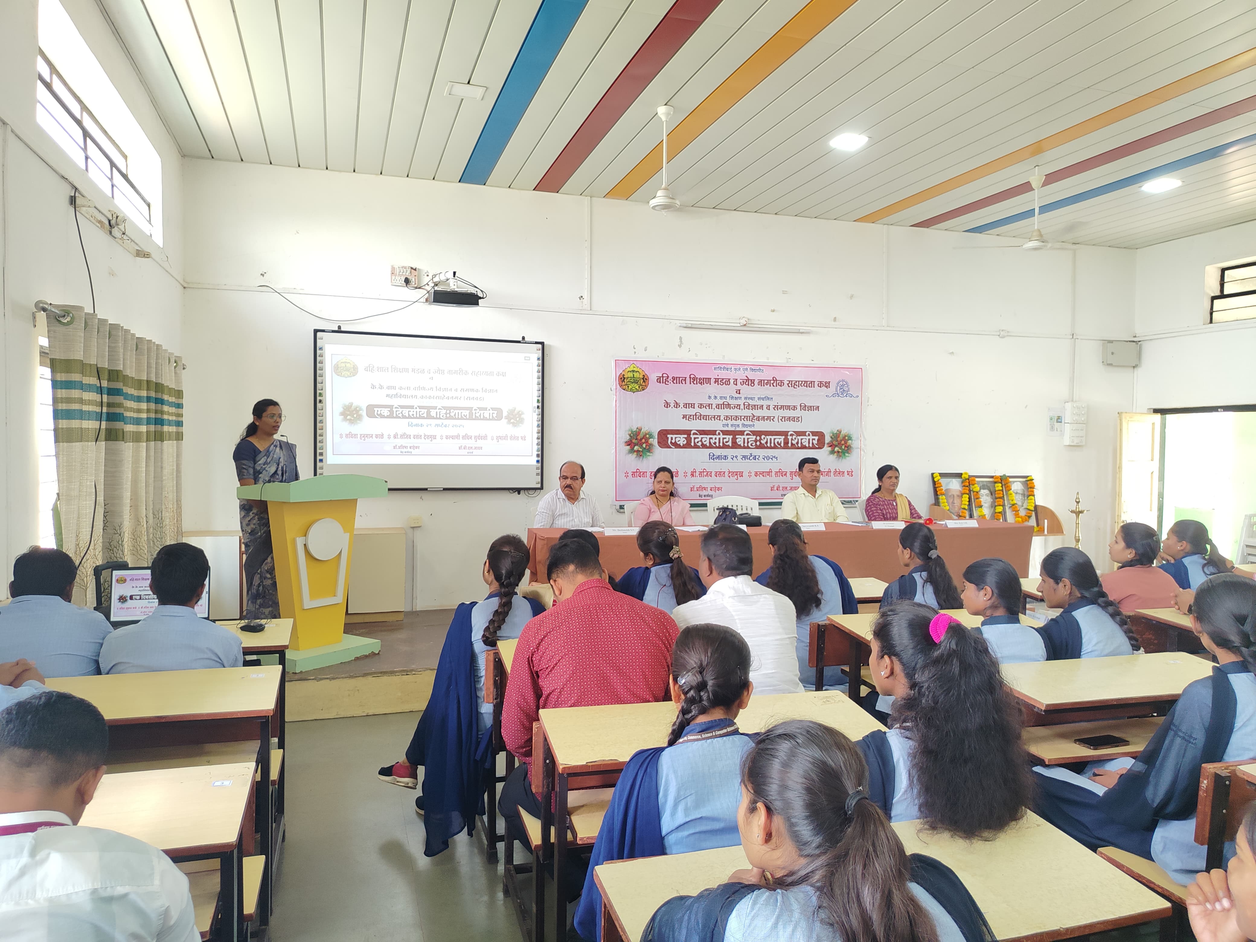 K. K. Wagh Arts, Commerce, Science and Computer Science College Kakasahebnagar and Savitribai Phule Pune University, Pune jointly organized the Ek Divsiy Bahishal Shibir under Extra Mural Studies on 29th September 2025. This workshop was inaugurated by Dr. Atul Gaware I/C Principal of the college.